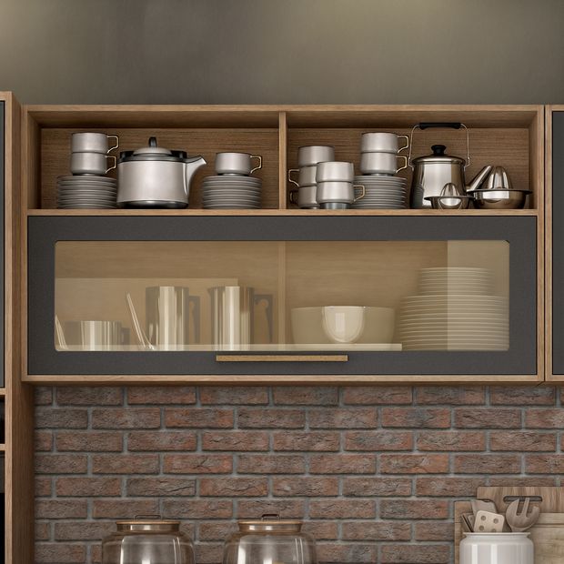 O Armário Aéreo com vidro é a escolha ideal para quem busca praticidade e um toque de sofisticação na cozinha. Sua porta de vidro oferece visibilidade para expor taças e objetos decorativos. Seu design moderno e elegante se adapta a diferentes estilos de decoração, tornando o ambiente mais funcional e bonito. Ideal para quem precisa de mais espaço sem abrir mão da estética, este armário traz uma combinação perfeita de beleza e praticidade para sua cozinha.