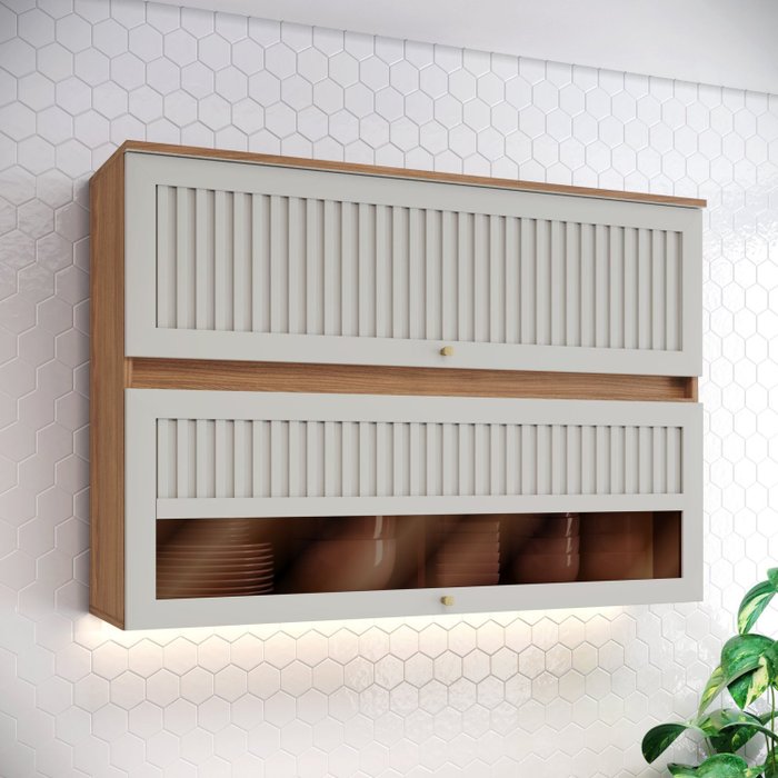 O Armário Aéreo 120cm 2 Portas basculantes com detalhes ripados e Vidro da linha de cozinha modulada Yasmin - Espresso Móveis tem estilo e design contemporâneo. É a solução perfeita para a sua cozinha, com praticidade e beleza transforma o espaço dando um toque charmoso e elegante. Projetado para ser compacto e funcional, com materiais de altíssima qualidade e resistência garante segurança e durabilidade que sua cozinha merece. Conheça a linha completa de balcões e armários da linha Yasmin - Espresso Móveis e monte a cozinha dos seus sonhos.