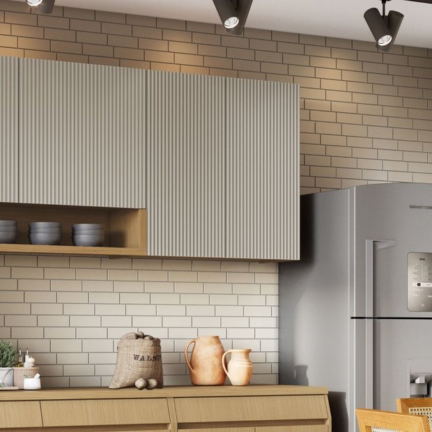 Armário Aéreo 2 Portas Simone Mendes 80cm 100% Mdf Carvalho/Greige