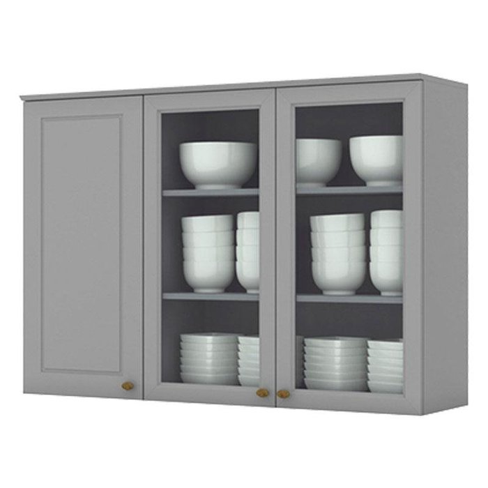 Armário Aéreo 3 Portas com Vidro 120 cm Nova York Cinza – Henn Cinza