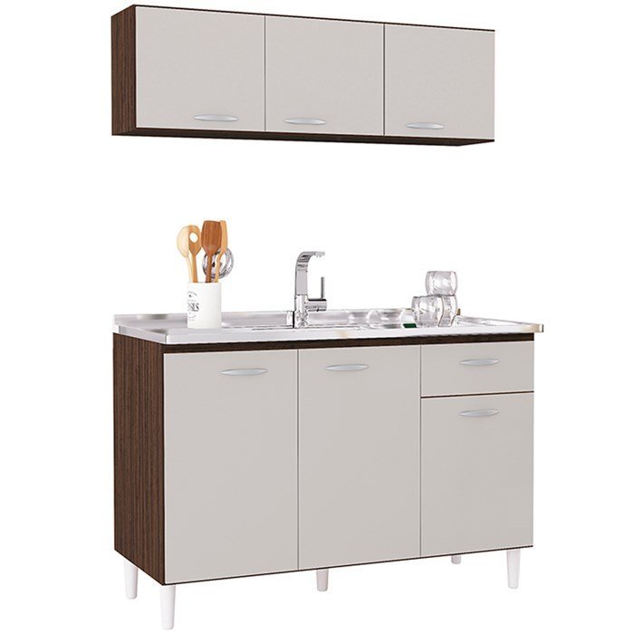 Armario Aereo 3 Portas e Balcao Pia 120 Cm Chocolate Off White Poqq