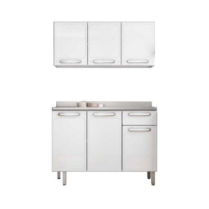 Armário Aéreo 7008 e Balcão Gabinete Pia Inox 120cm 7022 Evidence Branco - Bertolini
