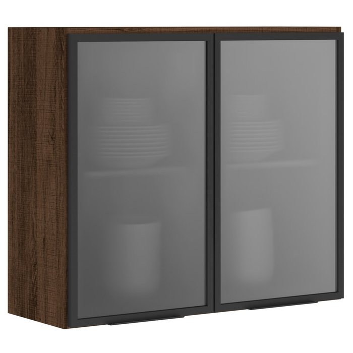 Armário Aéreo 80cm 2 Portas Vidro Reflecta 100% Mdf Kali Premium 3061.8 Amêndoa Rústico/cinza - Nici
