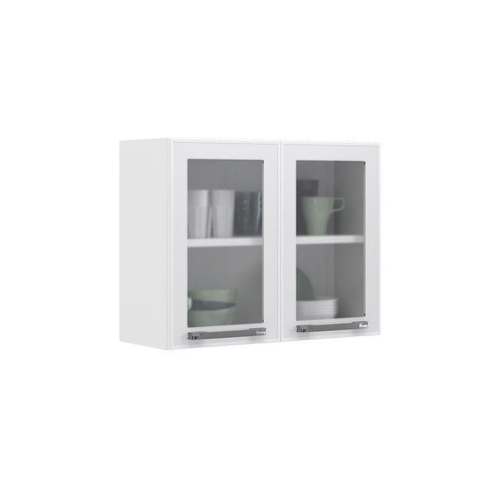 Esse modelo é composto por armários e prateleiras suspensos na parede, o que ajuda a aproveitar melhor a área disponível na cozinha.