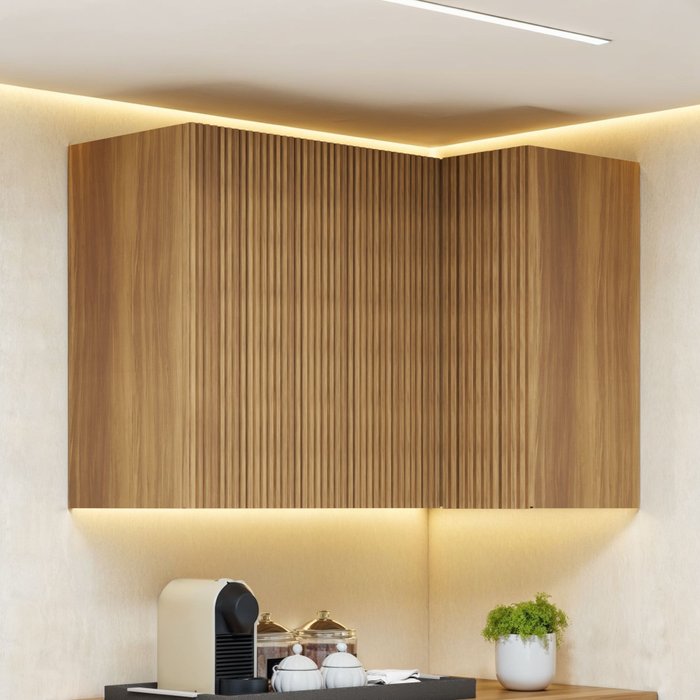 Armário Aéreo Canto Direita Esquerda Ripado Rainha 2 Portas 100% Mdf Nature