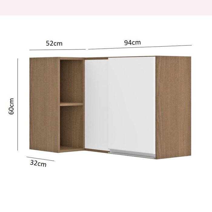 Armário Aéreo Canto Reto de Cozinha Sabrina 01 Porta 94x60x52 Avelã/Branco TX - Soluzione - 0460