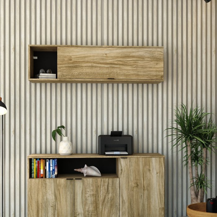 Armário Aéreo com Nicho e Porta Basculante 35x135x35cm Carvalho/Preto