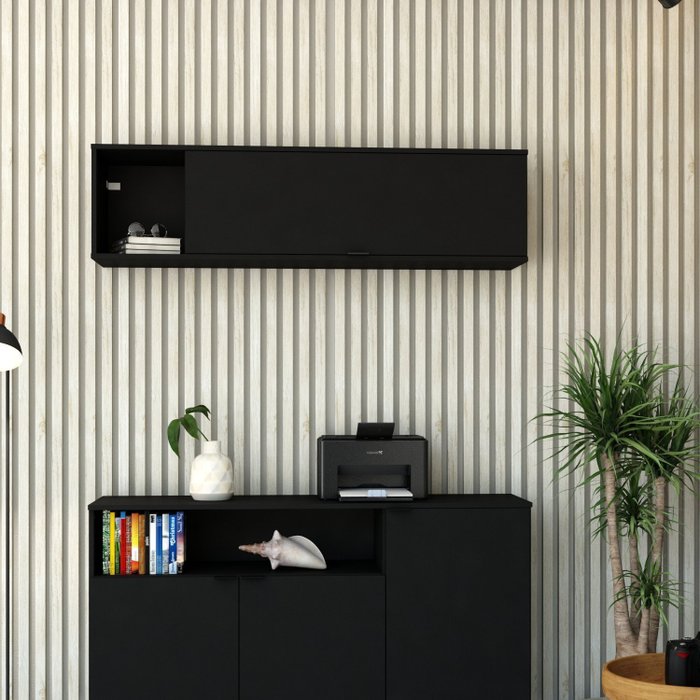 Armário Aéreo com Nicho e Porta Basculante 35x135x35cm Preto