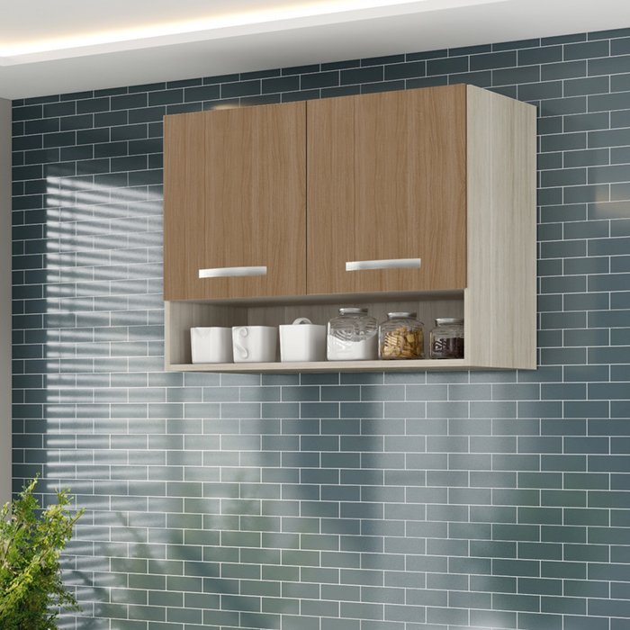 Armario Aereo Cozinha 2 Portas 0,80 Cm com Nicho Alice Hr Móveis