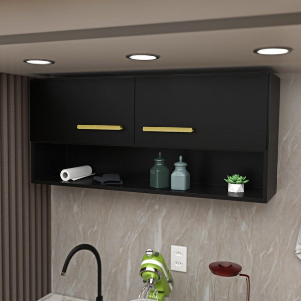Armário Aéreo Cozinha Modulado 2 Portas Compactas Preto