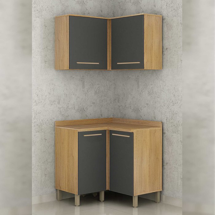 Armario Aéreo de Canto 2 Portas com Balcão 2 Portas de Canto Pérola Valdemóveis Cinamomo/Grafite