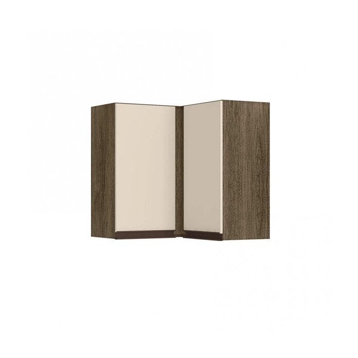 Esse modelo é composto por armários e prateleiras suspensos na parede, o que ajuda a aproveitar melhor a área disponível na cozinha.