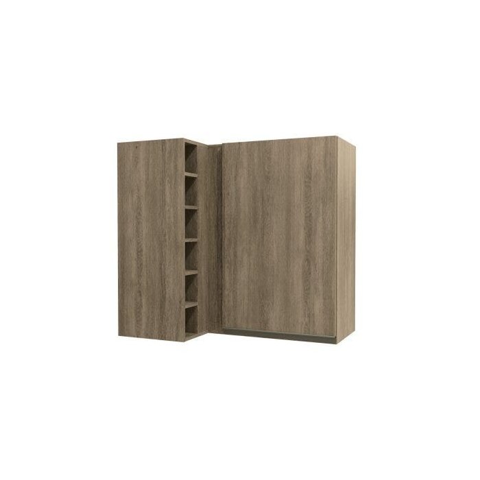 Esse modelo é composto por armários e prateleiras suspensos na parede, o que ajuda a aproveitar melhor a área disponível na cozinha.
