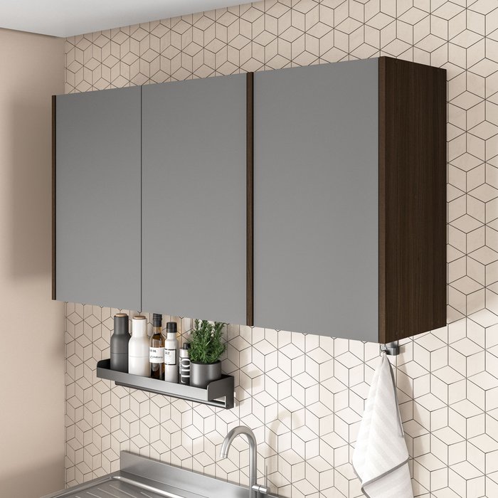 Armário Aéreo de Cozinha 3 Portas Campanele 120cm Amêndoa/Cinza