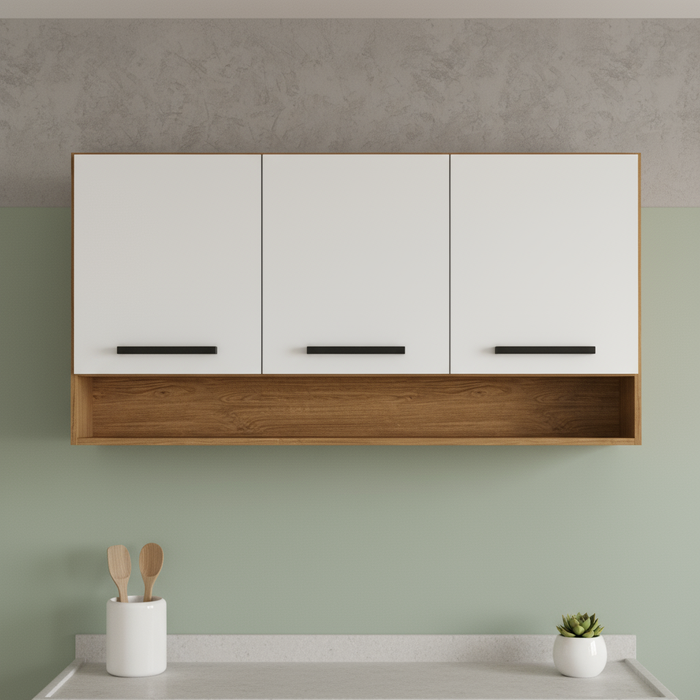 O Aéreo Triplo Giovanna é um produto com excelente qualidade, produzido em MDP, de fácil montagem possui 3 portas fixadas com dobradiças metálicas com puxadores preto. Facilitando a organização dos seus utensílios em geral, deixando assim sua casa com um ambiente mais moderno e aconchegante. Possui acessórios para instalação na parede, para melhor apoio e segurança.