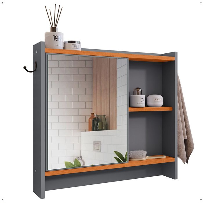 Armário Aéreo Espelheira Armarinho para Banheiro com Espelho Genova - Cinza/cinamomo - Lojas Rpm
