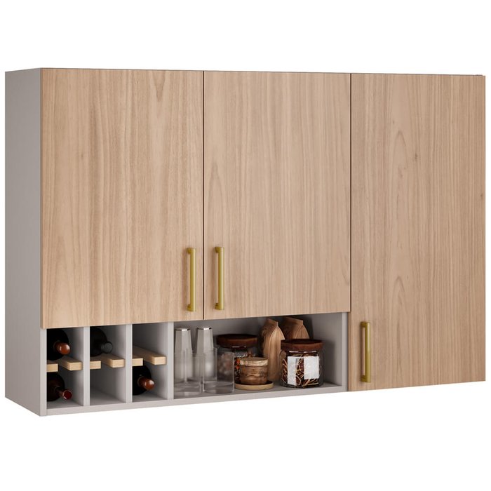Armário Aéreo Essence 3 Portas com Adega 120cm Itatiaia Fendi Cedro