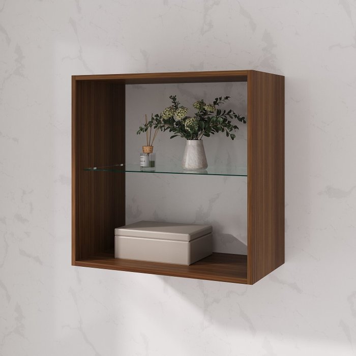 Armário Aéreo Fit 60cm sem Porta e com Prateleira de Vidro Oliva
