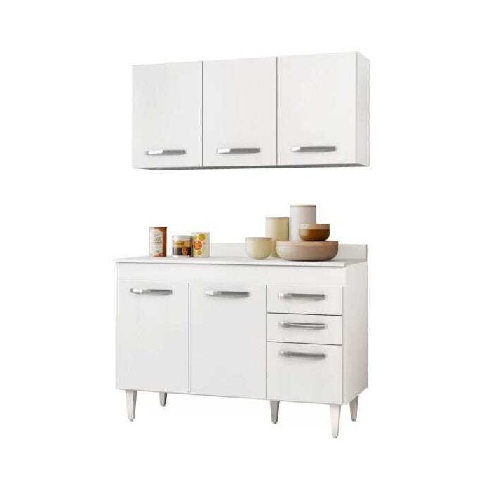 Armário Aéreo Honduras e Balcão Gabinete de Pia 120cm Suécia - Lumil Móveis - Branco Branco