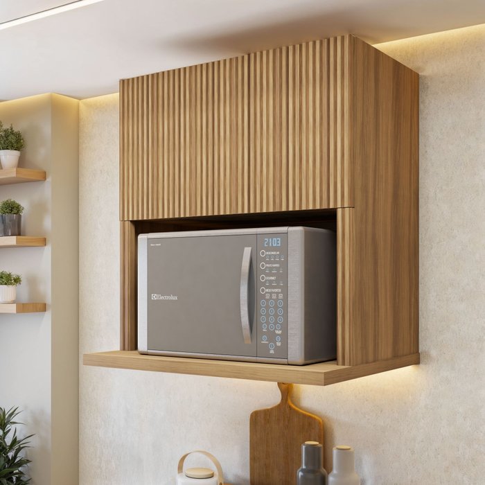 Armário Aéreo Micro 1 Porta Basculante 70Cm Ripado 100% Mdf Rainha