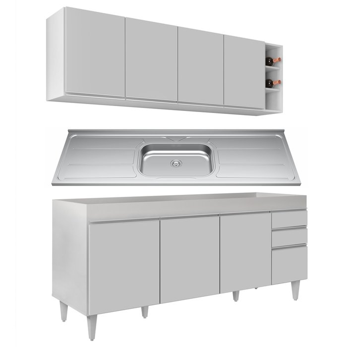 Conteúdo da Embalagem: 1 Balcão, 1 Pia,1 Armário Aéreo, 1 Nicho.