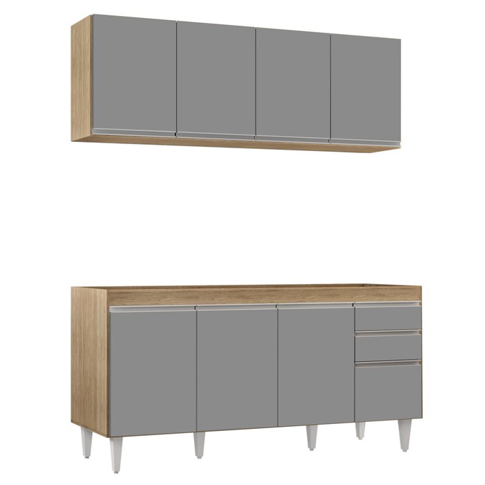 Armário Aéreo Nevada e Balcão Para Pia 160cm Arkansas Castanho/Cinza - Lumil Lumil Móveis Nevada/Ark