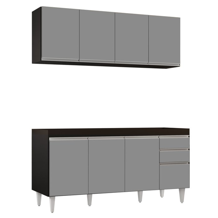 Armário Aéreo Nevada e Balcão Para Pia 160cm Arkansas Preto/Cinza - Lumil Lumil Móveis Nevada/Arkans