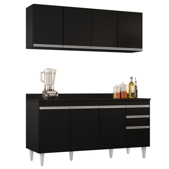 Se você procura uma Cozinha moderna e completa, vem conhecer o Armário Aéreo Nevada e Balcão para Pia com Tampo 160cm Arkansas Preto, da Lumil!