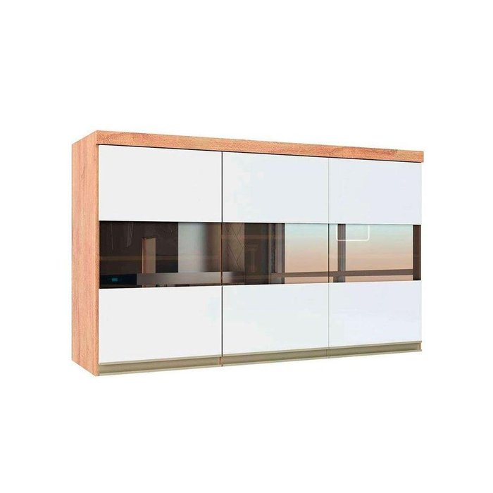Armário Aéreo p/ Cozinha Chardonnay 3 Portas c/ Vidro Reflecta120cm Castanho - Amenoda/Branco - Ronipa