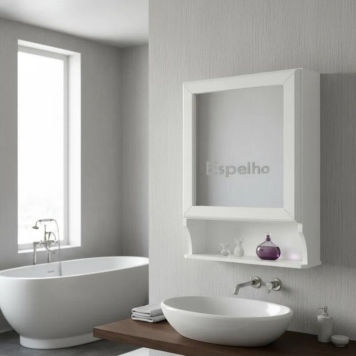 Armário Aéreo para Banheiro com Espelho Retrô Espelheira Branco Laca Branco