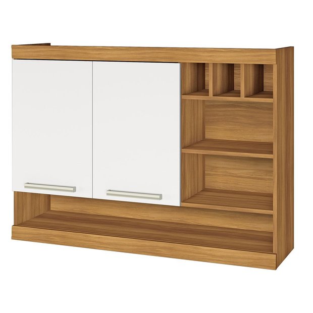Armário Aéreo para Cozinha 2 Portas com Nicho e Adega Burguesa Freijó com Branco - Nesher Freijó com Branco