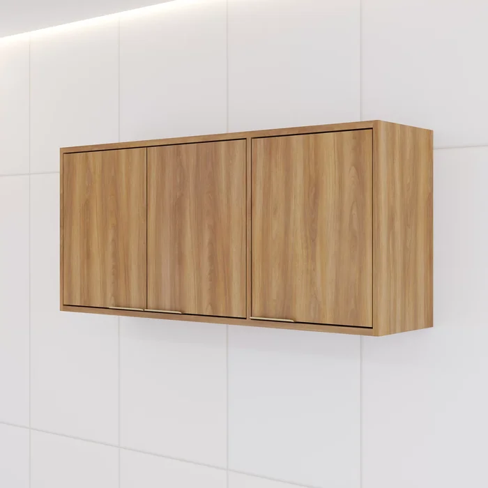 Armário Aéreo para Cozinha 3 Portas 120cm Thalita Nogal Manchester