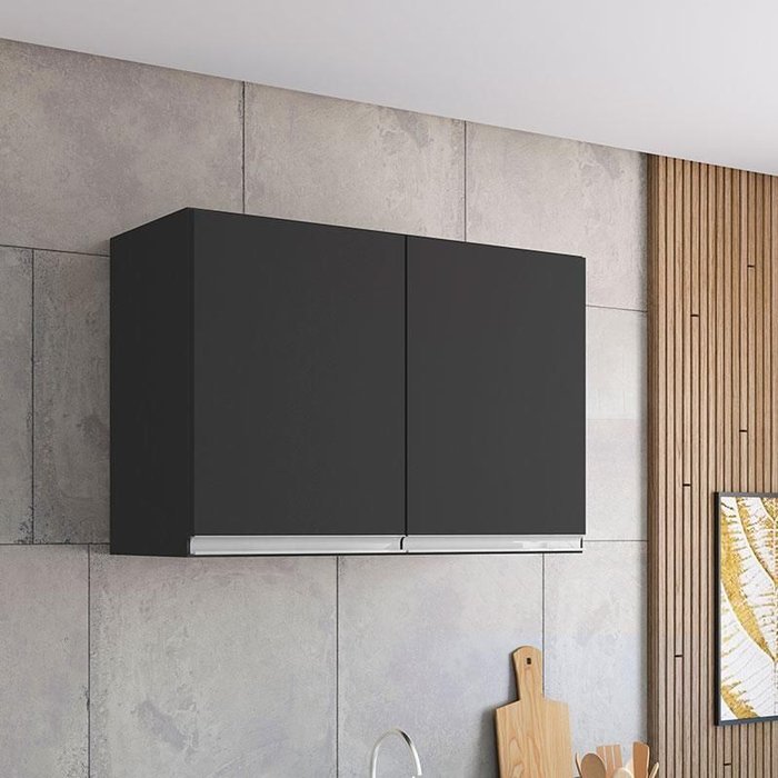 Armário Aéreo para Cozinha Andréia 2 Portas 80 cm Preto - AJL