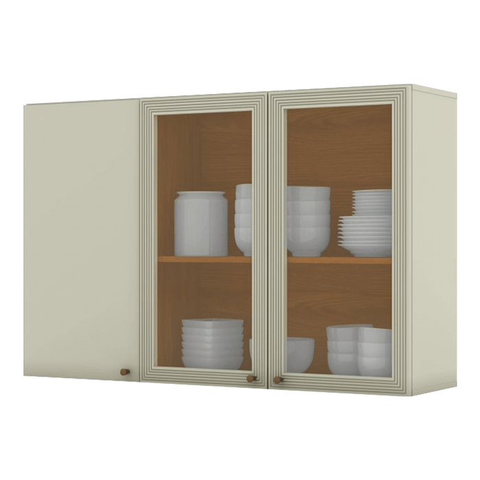 Forma prática e charmosa de complementar a usabilidade do balcão da sua cozinha, o Armário Aéreo Poxis é uma mão na roda para quem precisa de mais espaço para guardar aqueles itens indispensáveis para a rotina: nos nichos internos, você tem compartimentos ideais para acomodar louças, utensílios, alimentos secos e até pequenos eletrodomésticos, tudo isso, é claro, sem abrir mão de um visual de bom gosto por fora. A coloração é leve e a estrutura é tradicional, perfeitas para um ambiente onde a família se reúne para cozinhar e curtir as refeições , também são ótimas para harmonizar com os outros móveis e acessórios pertinentes ao cômodo.