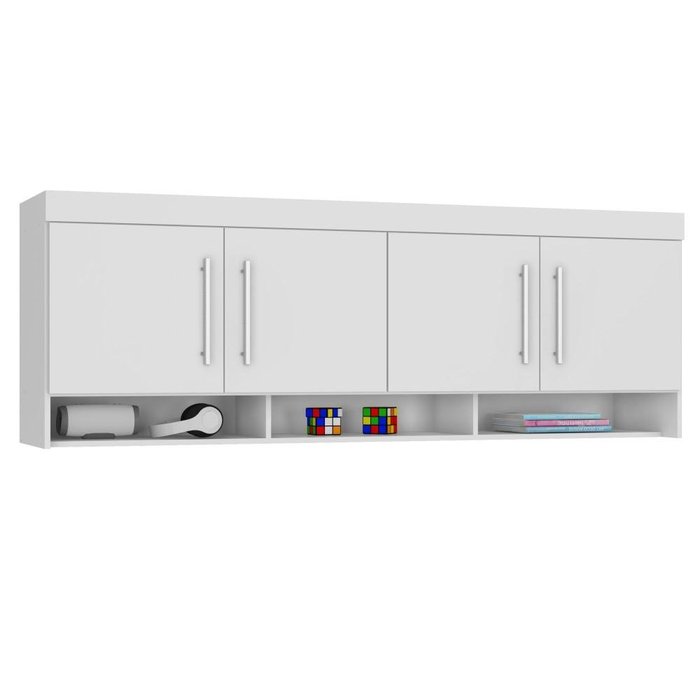 Armário Aéreo Prateleira Para Quarto Casal Solteiro 4 Portas 3 Nichos Marrom Branco Branco