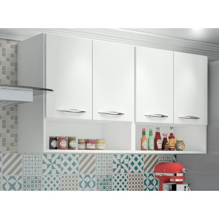 Armário Aéreo Suspenso 4 Portas 1,20m de Parede Multiuso ClickForte Armário Aéreo Parede 4 Portas Br Branco