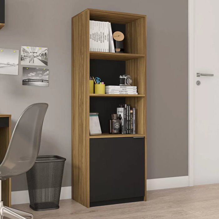 Armário Alto 1 Porta 5 Prateleiras Recta Caemmun Mel/Preto