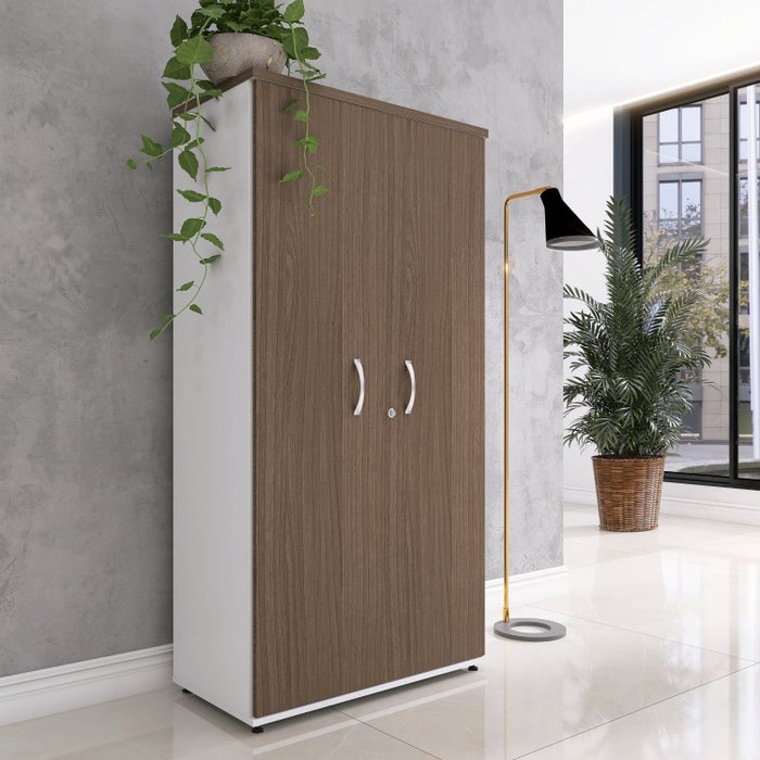 Armário Alto 2 Portas Pivotante 159,6x79,2x41cm Branco/Walnult