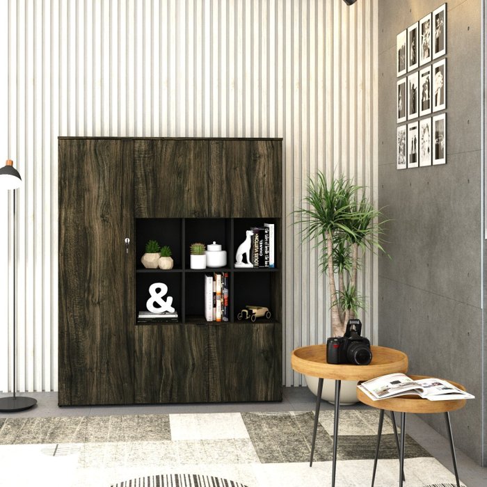Armário Alto com Nichos e 05 Portas 161,5x135x42cm Carvalho/Preto