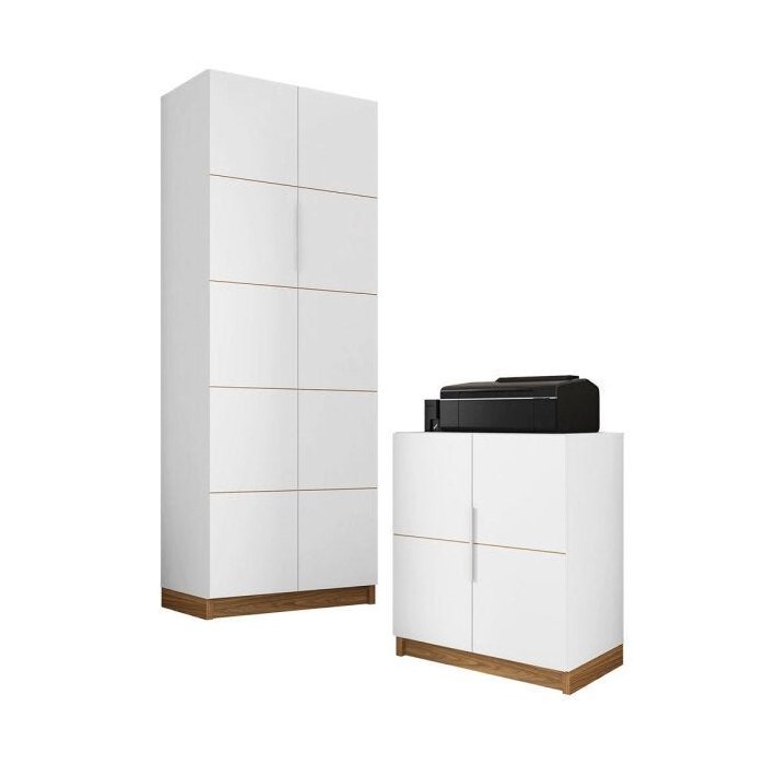 Armário Alto e Baixo Para Escritório Cubic Branco Caemmun Branco TX / Louro Freijo