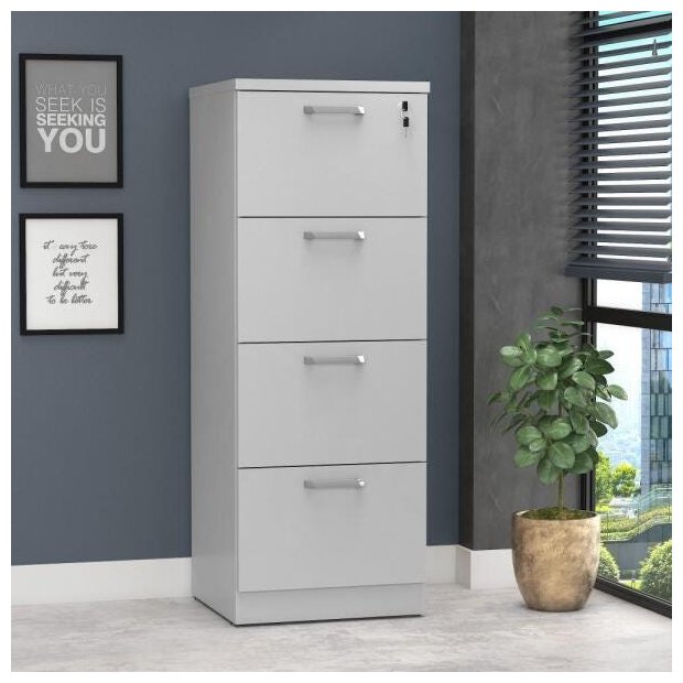 <p>Os armários são uma excelente opção para organizar seu escritório de uma maneira prática e elegante, pois oferece beleza e sofisticação a qualquer ambiente. Produto multifuncional, produzido em MDP com revestimento melamínico BP, o que garante maior qualidade, resistência e durabilidade.</p> <p>Especificações</p> <p>- Comprimento: 46,5 cm</p> <p>- Largura: 45,0 cm</p> <p>- Altura: 126,5 cm</p> <p>- 4 Gavetas Arquivo</p> <p>- Tranca na primeira gaveta</p> <p>- Recomendação de Limpeza: Limpar com pano seco para retirar o pó. Não aplicar produtos abrasivos.</p> <p>- Produtos de Enfeite e Eletrônicos Não Estão Inclusos.</p>