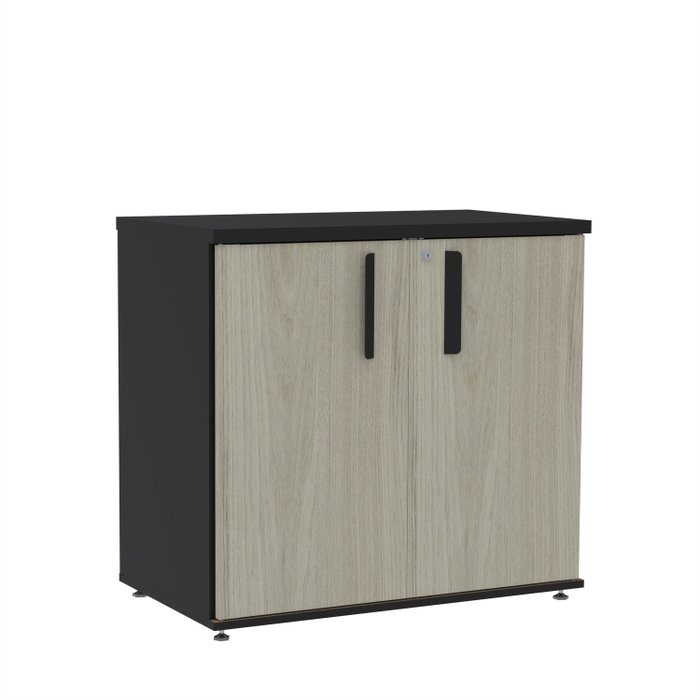 Armário Baixo 02 Portas Pivotante Abc745 Nogueira Casablanca/Preto