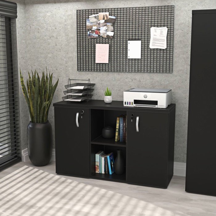 Armário Baixo Credenza com Chave 120x42cm Escritório Preto