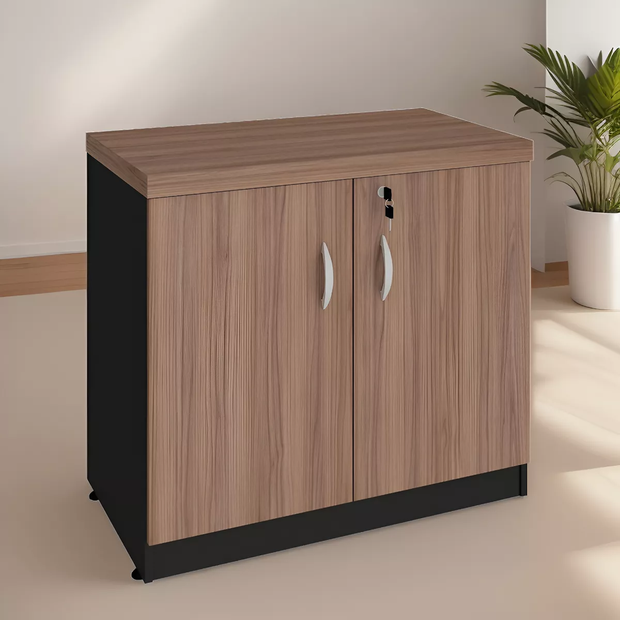Armário Baixo Escritorio Balcão 40mm 2 Portas e Fechadura Atacadão Moveis Escritório Málaga com Preto