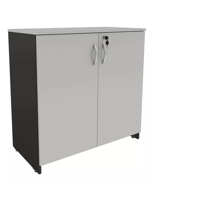 Armário Baixo Fechado Escritório Home Office Cinza/Preto Cinza Cristal