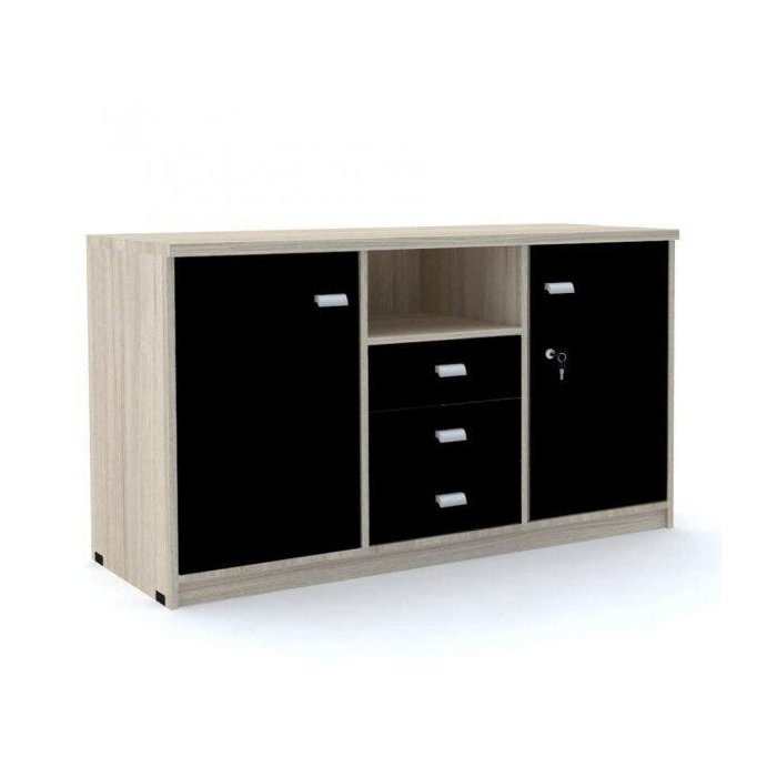 Armário Baixo Nicho 3 Gavetas 2 Portas Credenza Arena Pandin Móveis Nogueira Casa Blanca/ Preto