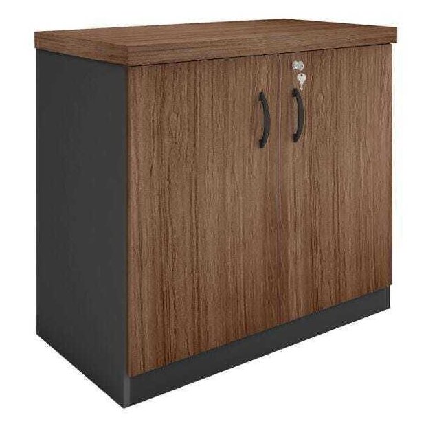 Armário Baixo para Escritório com Chave - Linha Essencial - Madeirado/Preto - Stock Móveis Málaga/Preto