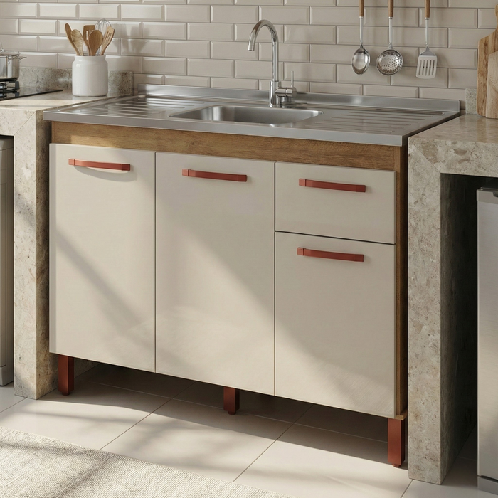 Armário Balcão 120cm para Pia de Cozinha - Ipê Off White