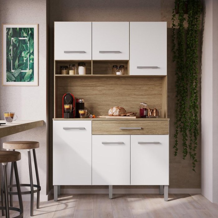 O Kit de Cozinha AC6001 da Decibal Móveis é produzido em MDP e possui acabamento em pintura UV. Possui 6 portas e 1 gaveta, dobradiças e corrediças metálicas. Conta com divisórias internas que ajudam a manter tudo organizado, ele é ideal para deixar a sua cozinha funcional e cheia de charme. Especificações - Comprimento: 120 cm - Largura: 38 cm - Altura: 188 cm - 6 Portas - 1 Gaveta - 3 Nichos - Recomendação de Limpeza: Limpar com pano seco para retirar o pó. Não aplicar produtos abrasivos. - Produtos de Enfeite e Eletrônicos Não Estão Inclusos.