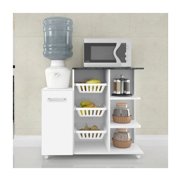 Armário Balcão para Cozinha 1 Porta 3 Prateleiras com Fruteira Maria Plus Madine Branca